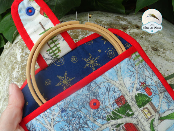 El último día os conté que a Pilar y su hija Bego, les gusta en estas fechas los objetos cotidianos vestidos de Navidad. El último que les he preparado es una funda de bastidor para guardar dos pequeños bastidores de 12 cm.