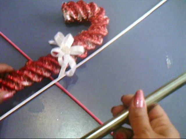 Para hacer un bastón mas delgado, utilicé un tubo de 4.5 centímetros de grueso y necesité solamente dos varillas de papel, en este caso, pintadas previamente para que resulte un bastón bicolor...