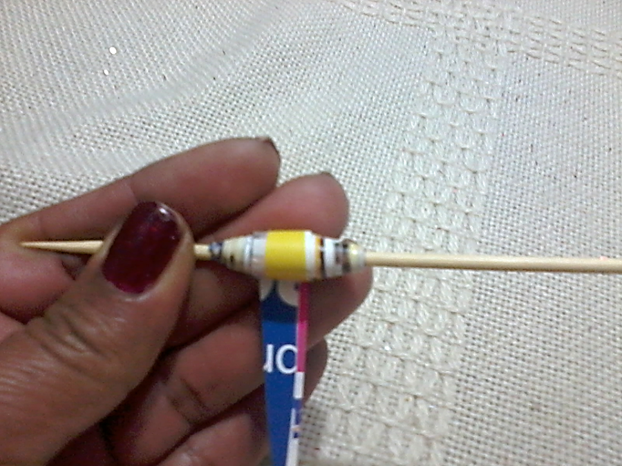 Ponemos pegamento o cola blanca en las puntas y terminamos de enrollar....