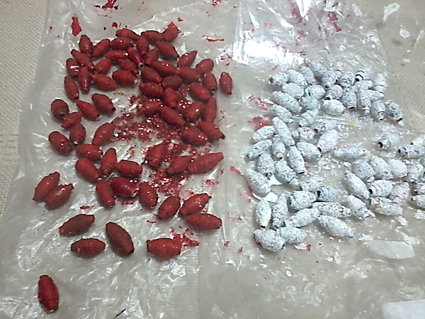 Pintamos las cuentas con pintura acrílica o vinílica...