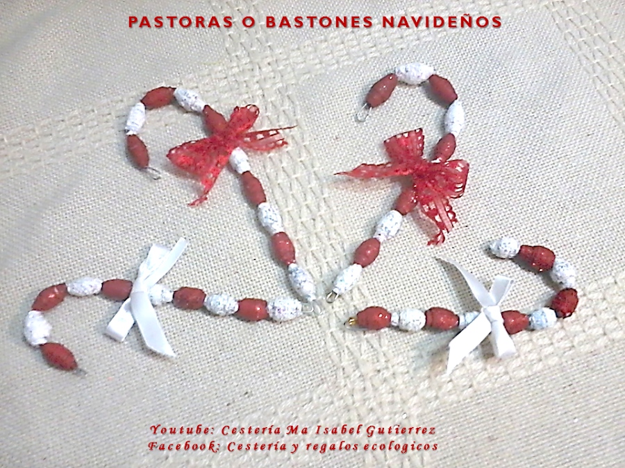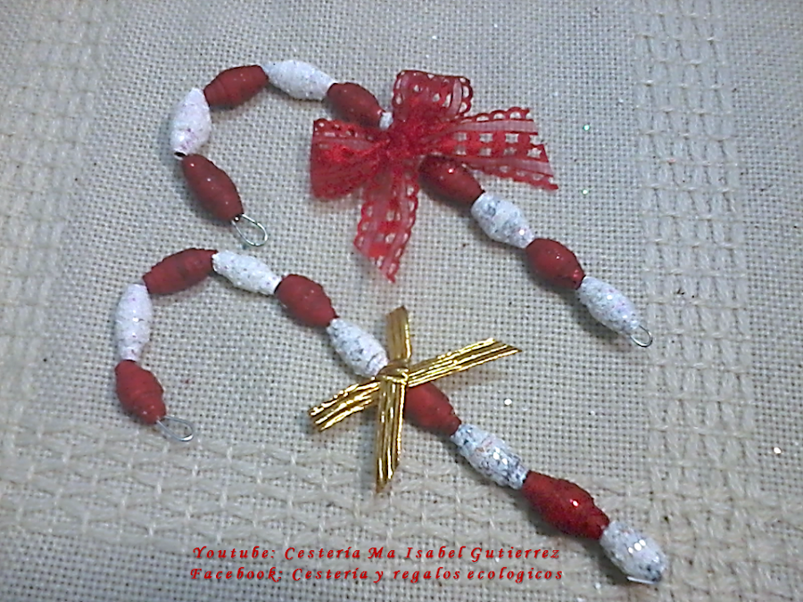 Los bastones se forman con cuentas pequeñas que se hacen con tiras largas de papel en forma de triángulo...
