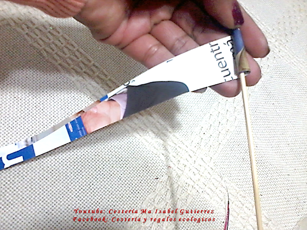 Ya cortadas las piezas, empalmamos cinco y con un palillo muy delgado, empezamos a enrollar desde la base...