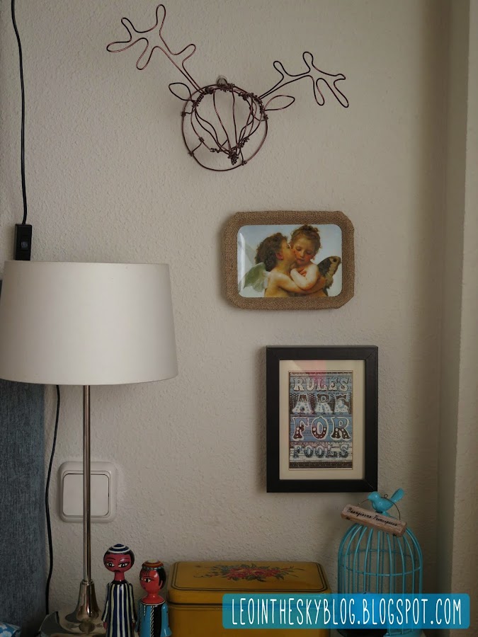 A mí me daba pena que se me estropeara la postal y por eso acabé usándola de cuadrito. Como pesa muy poco con la cinta de doble cara se pega bien a la pared, y eso que mi pared no es lisa, tiene gotelé: