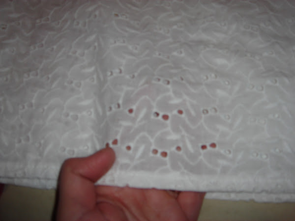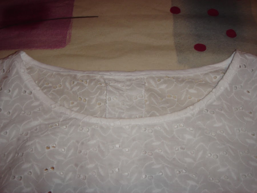 El cuello lo he pulido con cinta al bies de algodon de color blanco, para esta tela bordada me gustaba mas asi el cuello.