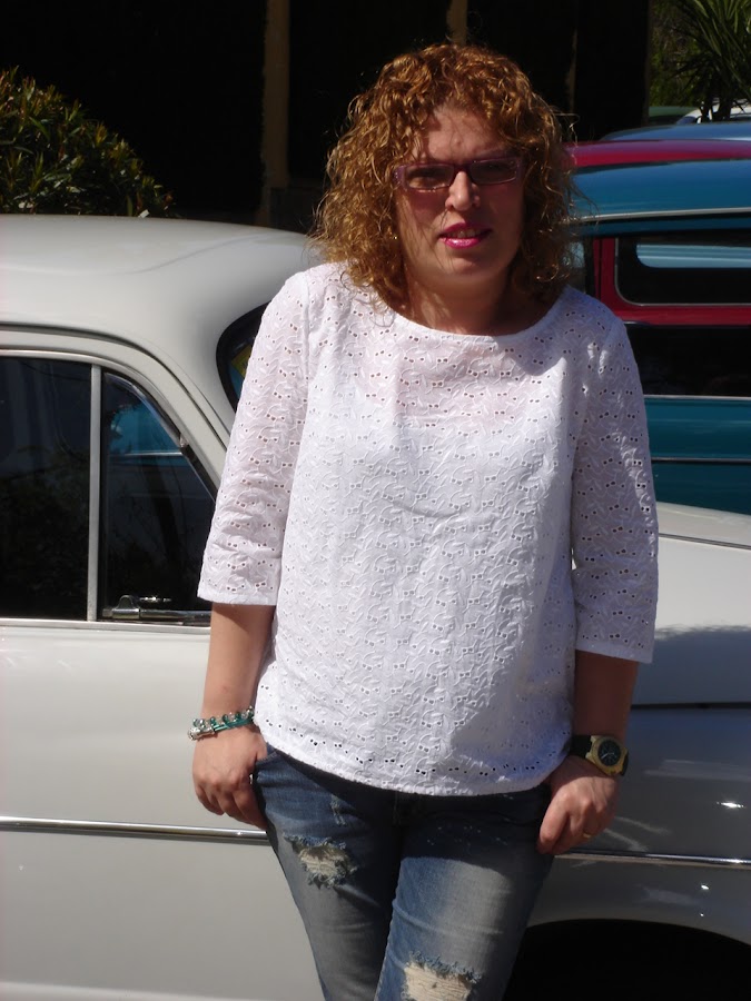 Y esta blusa la estrene el domingo que hacia un sol y una calor primaveral ,ideal para ver una exposicion de coches de epoca.