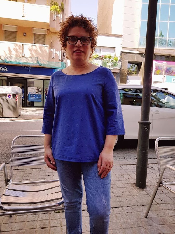 El modelo de la blusa es sencillo , pinzas en el pecho , escote rodondo y mangas 3/4.