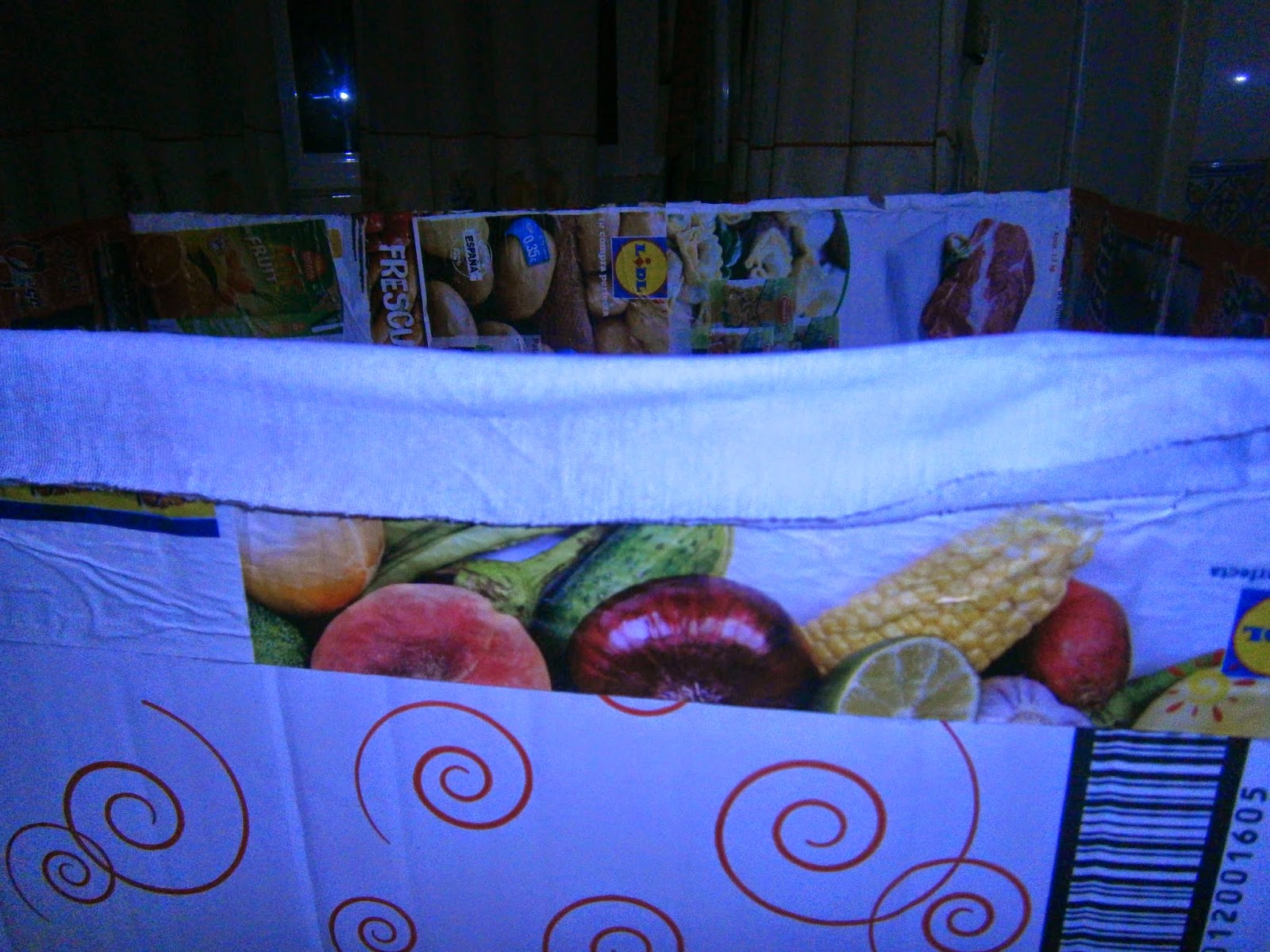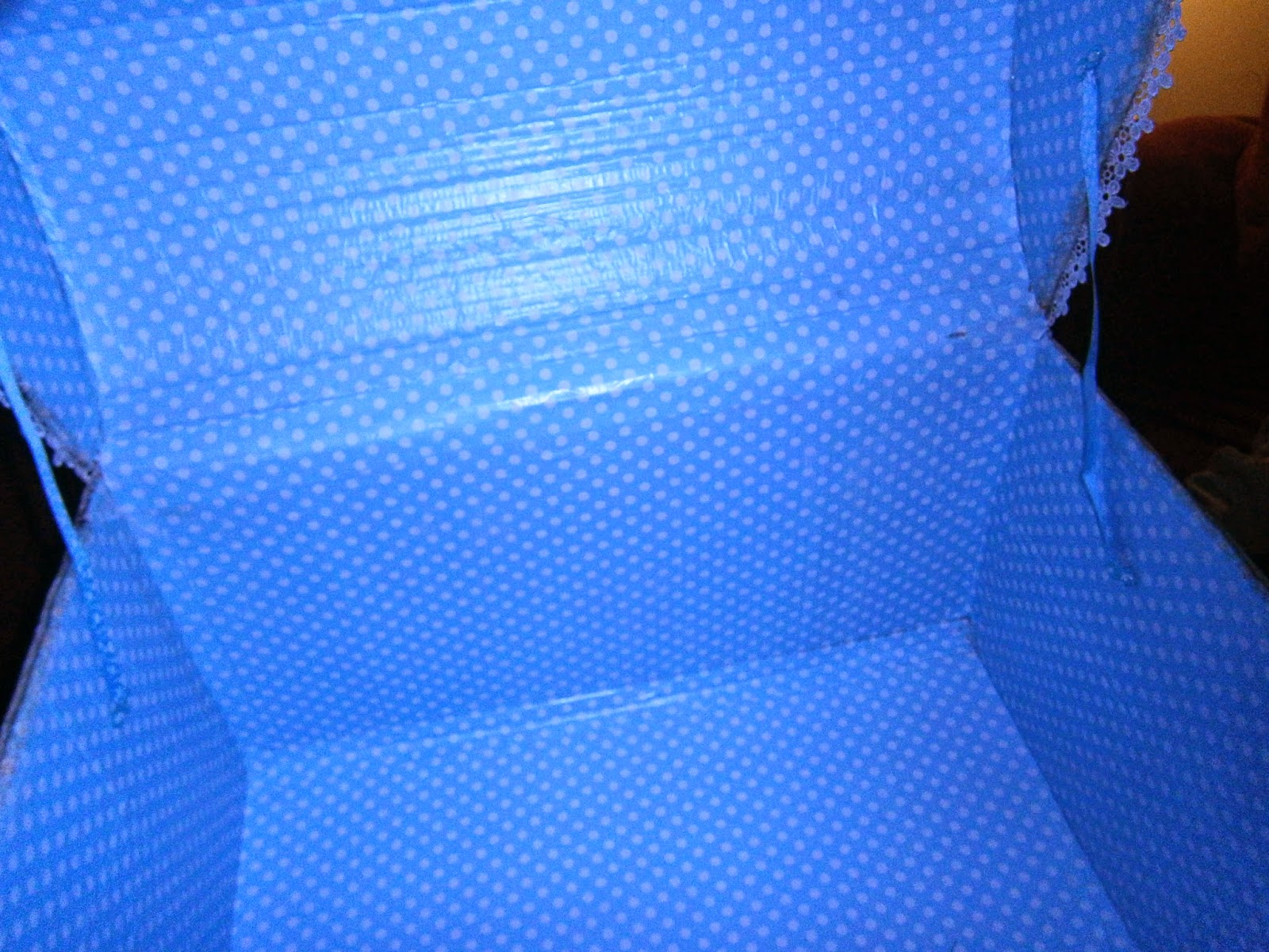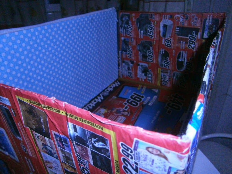 Una hermosa caja de cartón bien reforzada con papel, después para el interior forré unos cartones con un bonito papel de regalo