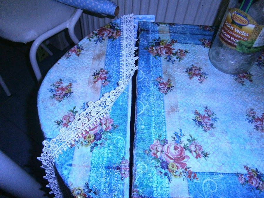 Del proceso de la tapa no tengo fotos así que os lo explico, para los arcos medí el lateral (el ancho) de la caja, marque el centro, traspasé las medidas a un cartón y tracé un semicírculo partiendo del centro y dándole la altura que consideré que quedaba bien.