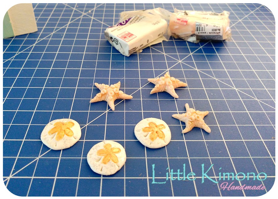 4. Luego queda crear las figuras marinas para complementar la decoración, podéis usar moldes si tenéis o como en mi caso modelarlos a mano ^^