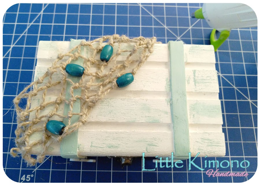Entre nudo y nudo podemos intercalar cuentas de madera en la misma tonalidad de la caja ;)