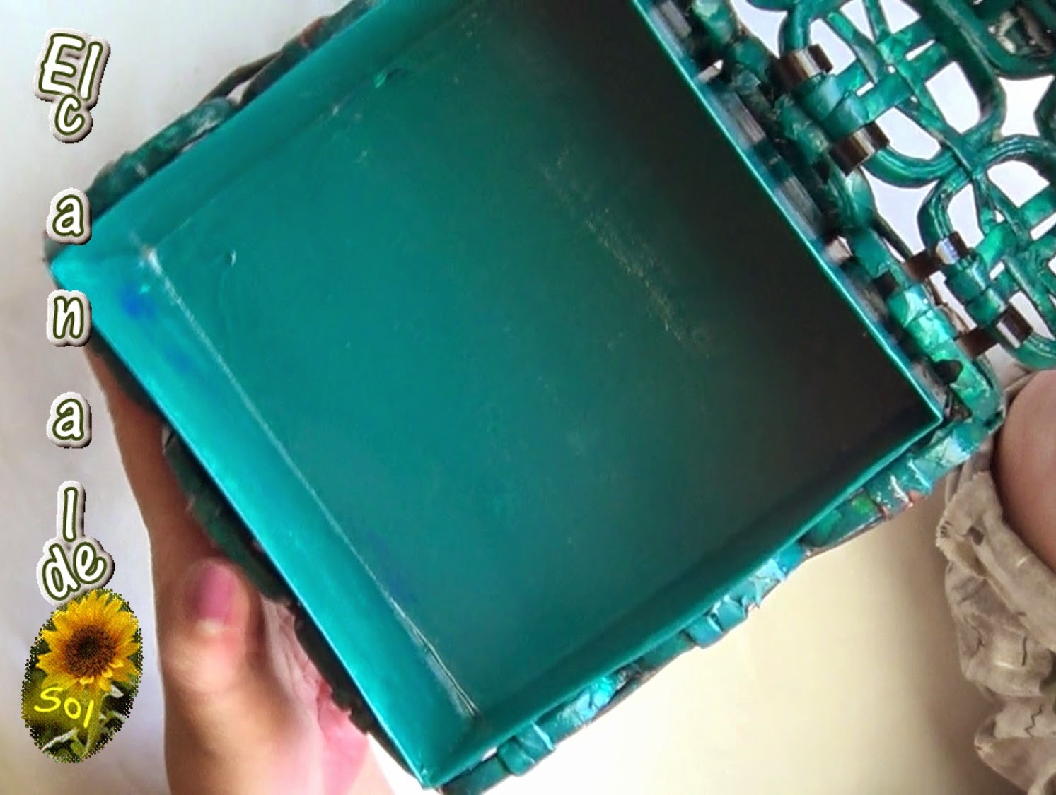 Por dentro hice una caja con cartón y la pinté del mismo color
