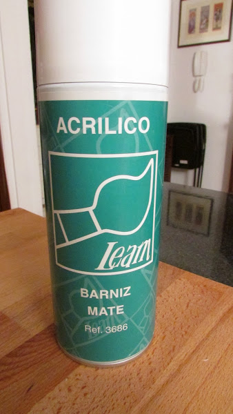 Utilicé barniz mate en spray porque es el que tenía en casa, pero se puede usar cualquier tipo. Con uno aplicado con brocha será más resistente ya que cubre mejor. Aunque aconsejo que sea mate porque el brillo le quitaría la gracia del efecto envejecido.