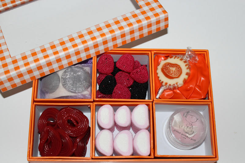 Así que después de la cena repartimos para mis tres sobrinas unas cajitas con departamentos en los que había metido chuches, globos y algún coletero, horquillas y brillo de labios.