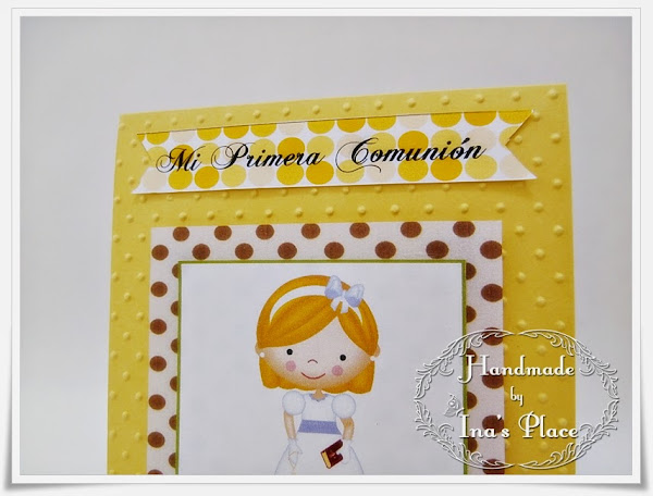 En éste diseño combiné el amarillo con el papel decorado en tonalidad marrón para romper un poco la monocromía;la sutileza aquí la da el emboss de puntos y reafirma la delicadeza del trabajo.
