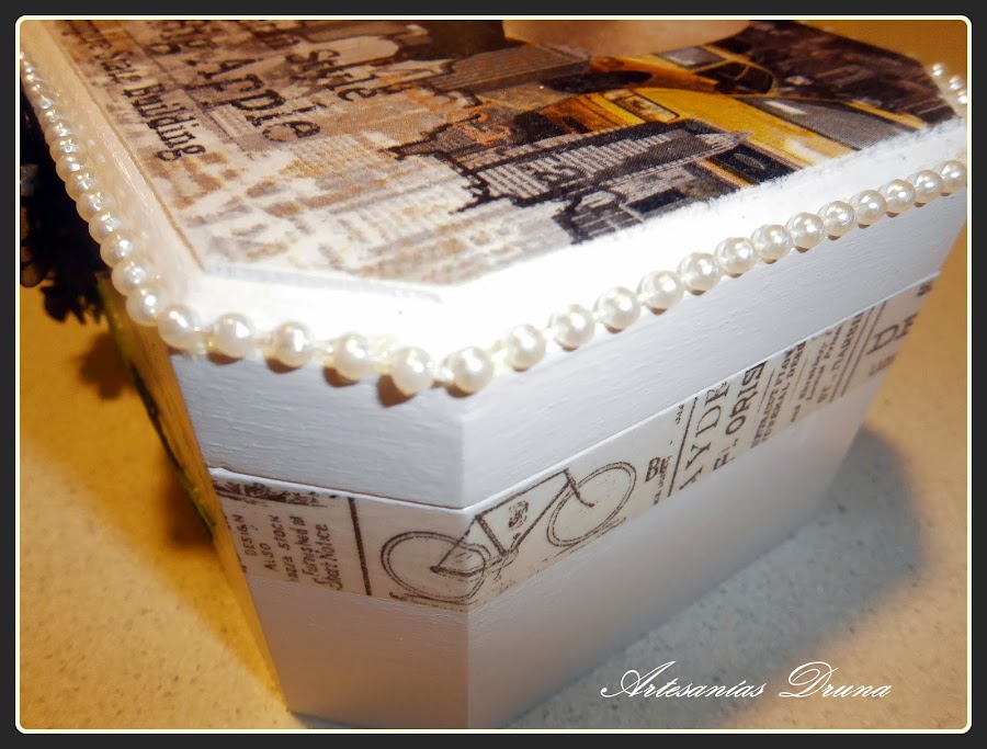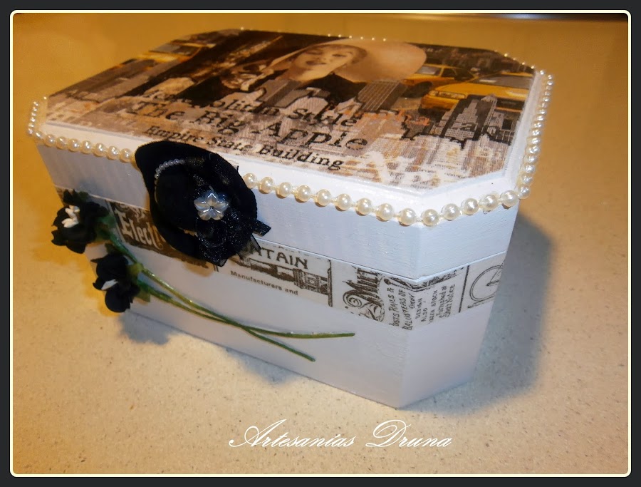 Esta cajita de madera me la consiguió mi querida Mar, y se fue para mi querida Mamen. Está realizada con acrílicas, entelada con doble faz y stencil.También va decorada con tela de arpillería barnizad ...