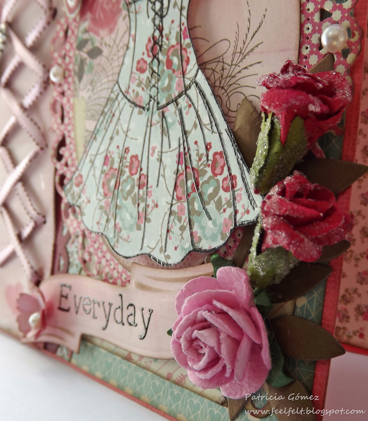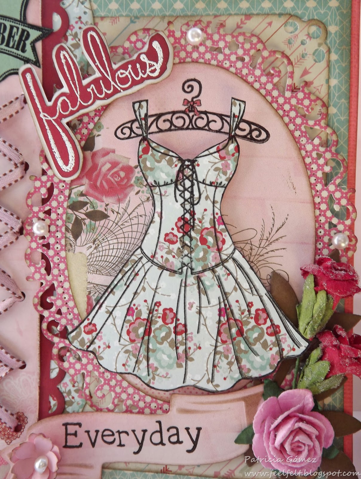 Desde que comencé en esto del Scrap, mi fijación por los sellos de vestidos, corsés y maniquíes no ha cesado...este vestido, ha sido de mis ultimos fichajes, y lo usé en esta tarjeta que confeccioné para felicitar el cumple de una amiga...