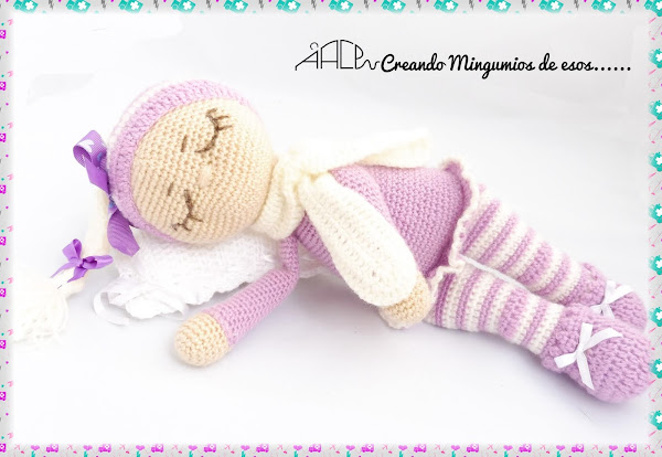 Este preciosidad la encontré navegando por la red y de inmediato me enamoré de ella, por eso cuando una amiga me pidió que le tejiese uno de mis mingumios para su sorbina a punto de nacer no lo dudé, es super fácil de tejer y cualquier combinación de colores que use se verá igualmente preciosa. El patrón es de Lollipop y lo podeís encontrar GRATIS en la web AMIGUROOM TOYS siguiendo este link https://amigurum.com/2017/10/sonia-sleeping-doll-amigurumi.html#.WdJ1_hAHaLM.pinterest.