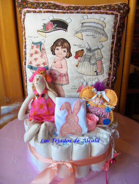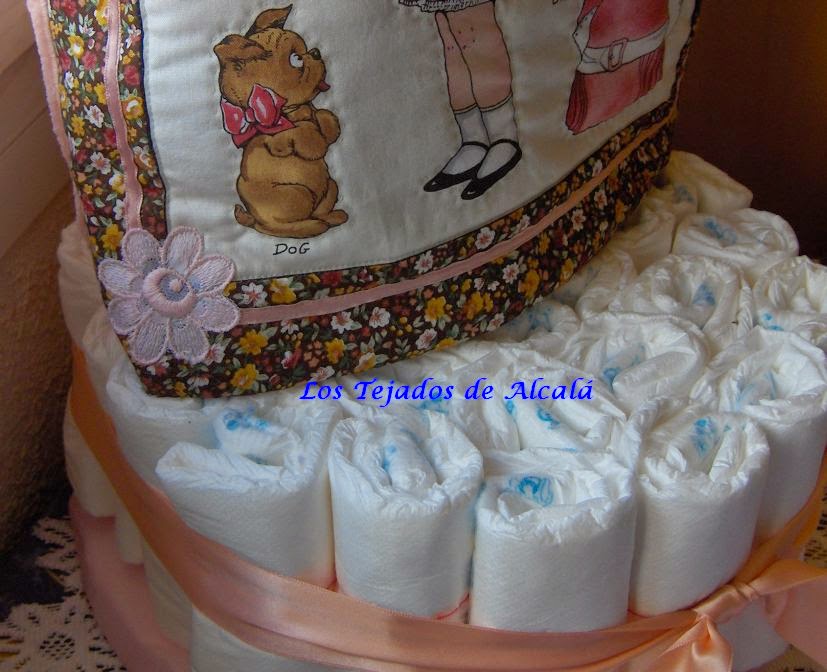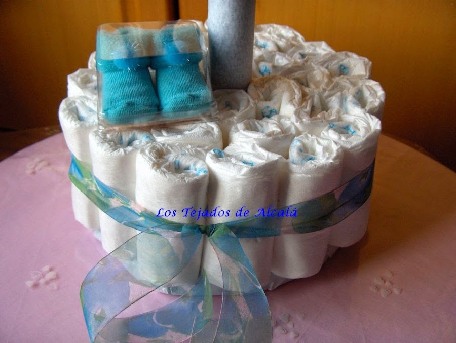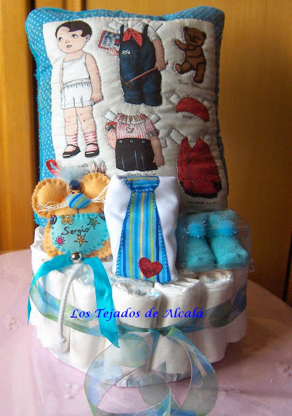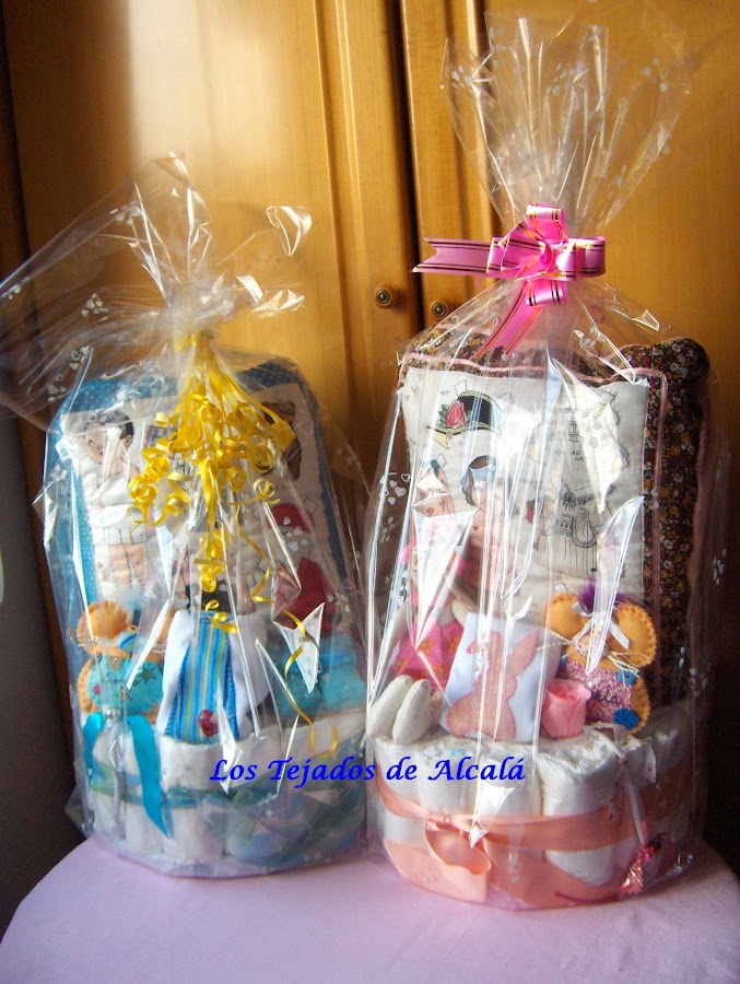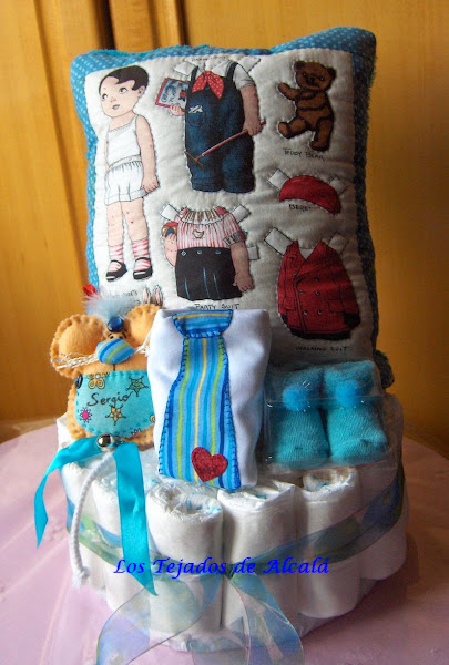 Daniela y Sergio son dos bebes preciosos que han nacido este mes de mayo. Les he hecho dos tartas de pañales, con un cojín manta y algún pequeño detalle más.