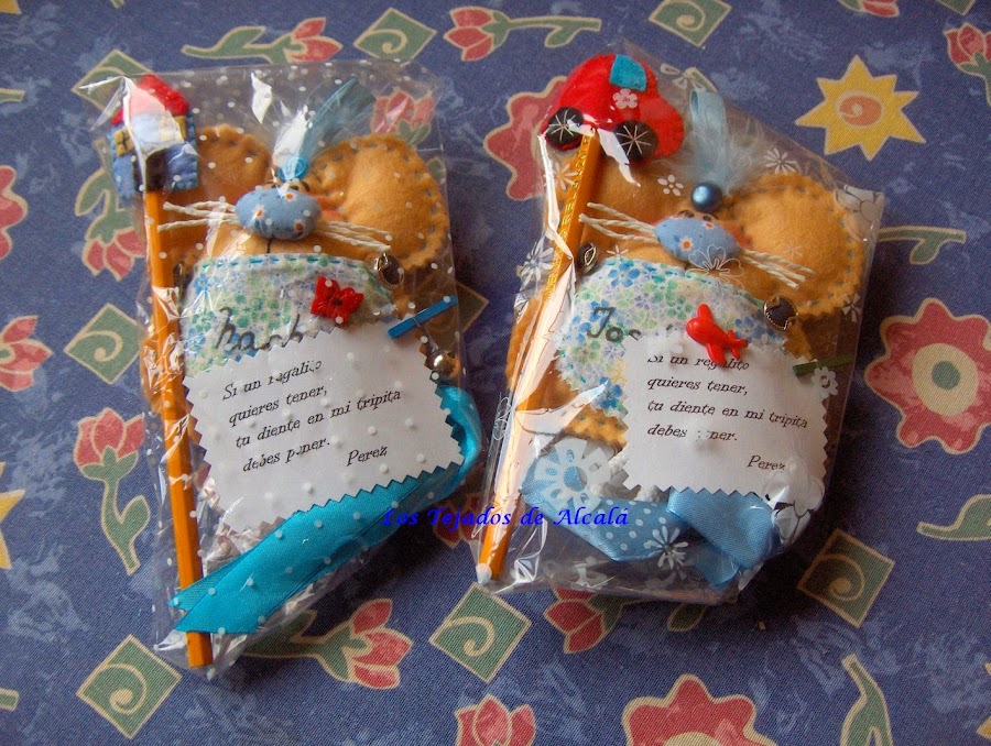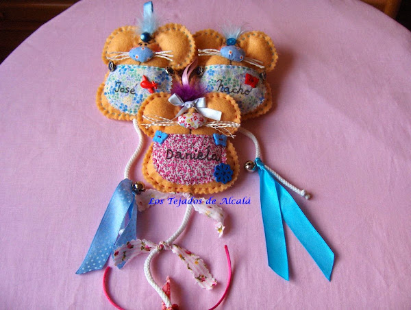Como Daniela tiene dos hermanos más, para ellos les he hecho también unos ratoncitos Pérez y unas fundas para los lapiceros.