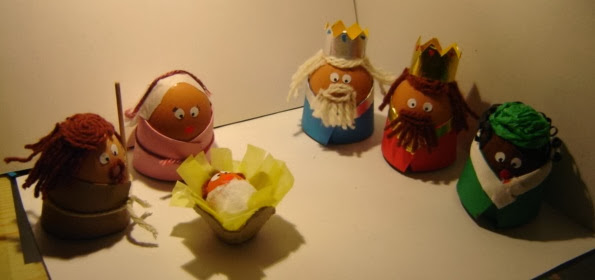 Es muy fácil, solo hay que cocer unos huevos y ponernos manos a la obra. Para el niño Jesus use un huevito de codorniz.