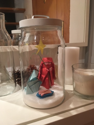 Uno de los belenes DIY que hemos hecho este año es este. Solo se necesita papel de colores y paciencia. Sobre todo para la virgen María.