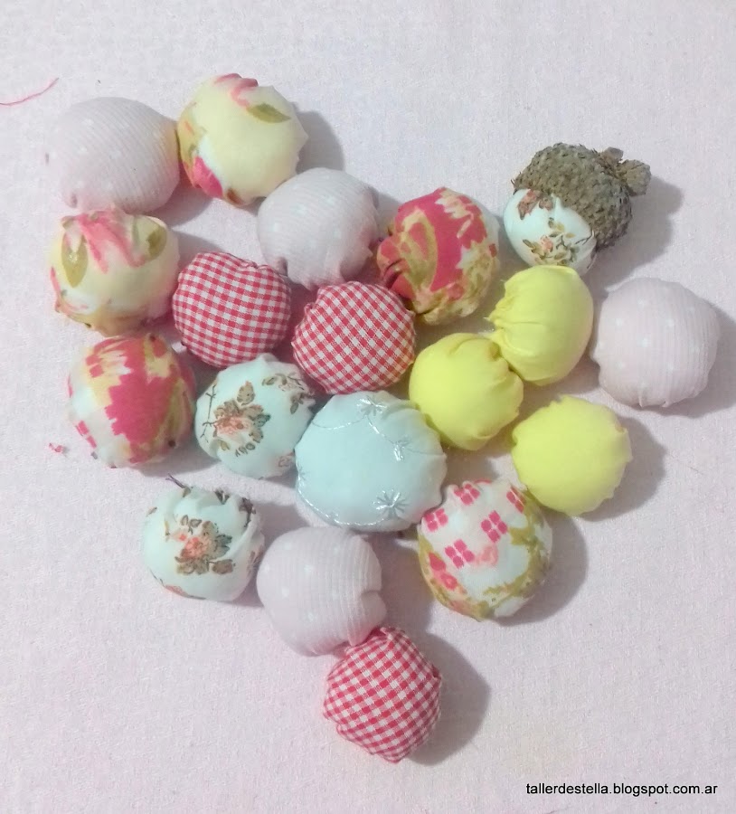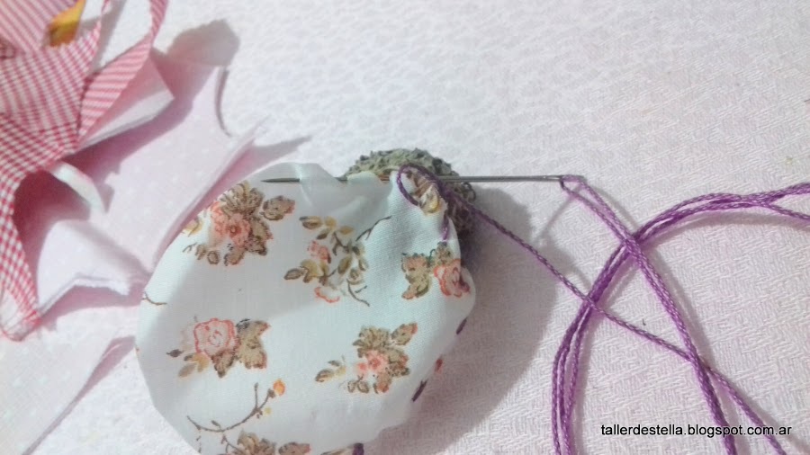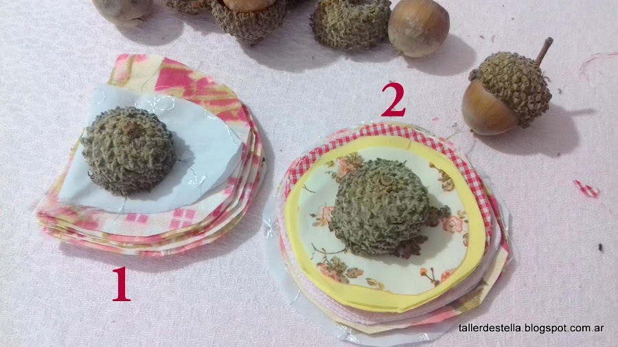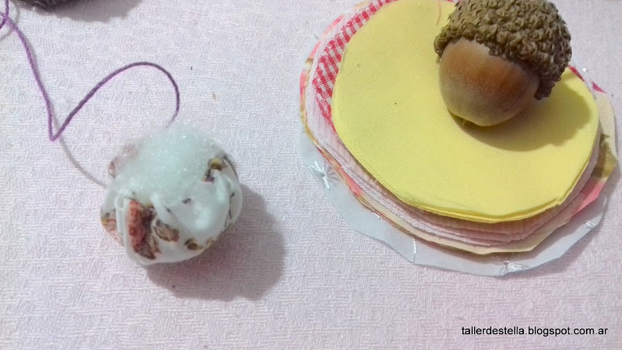 Usaremos un circulo de tela de unos 5cm - 6cm de diámetro aproximadamente...