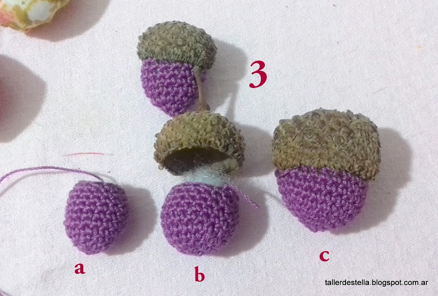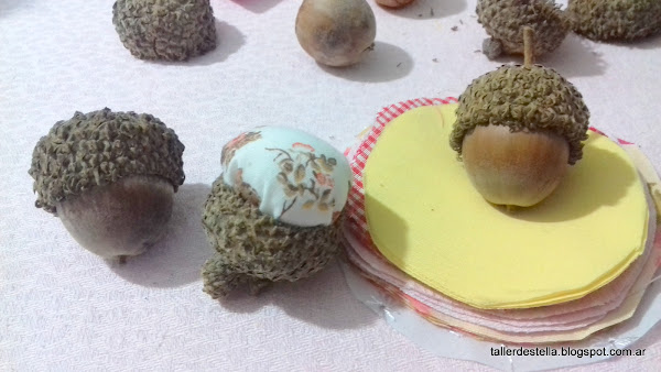 Pegar al sombrerito de la bellota con pistola encoladora.