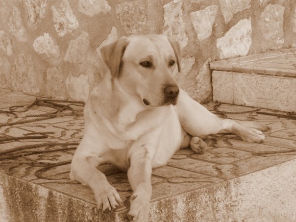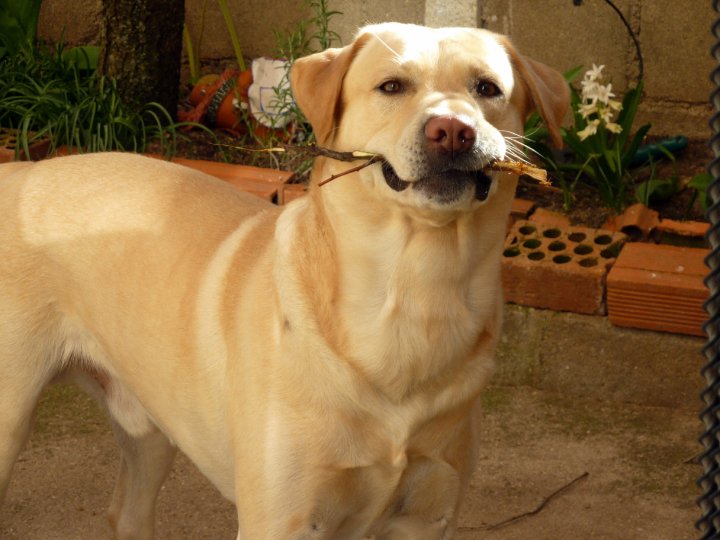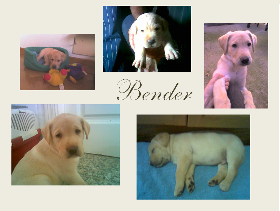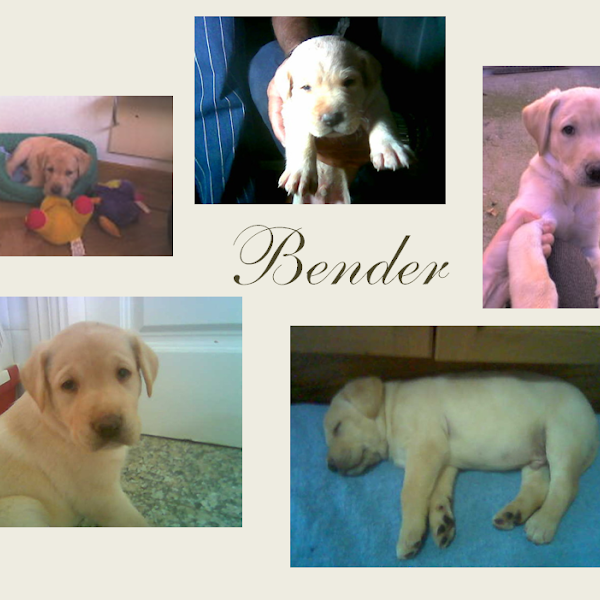 El se llama Bender, y es un labrador de 6 años y medio. Aun me acuerdo el día que llegó a casa, tenía un mes y era una bolita de color crema, que aún no sabía caminar bien y meneaba ese traserillo con tal gracia que se nos caía la baba.