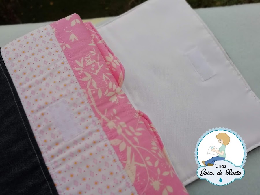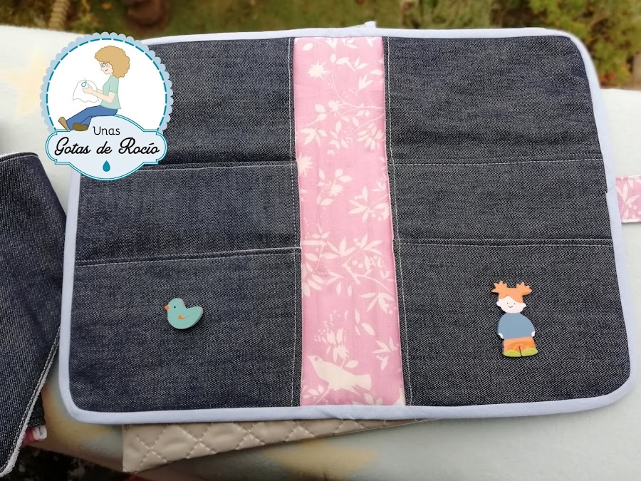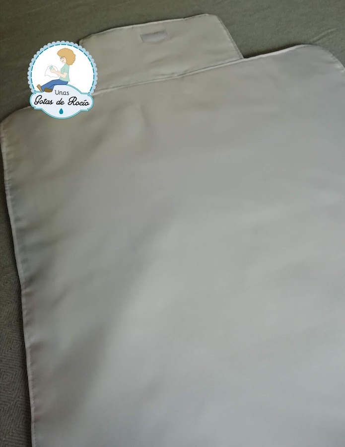 El cambiador lleva un lado impermeable (tela 100% polyester), interior de guata de algodón para hacerlo más confortable y cierre velcro.
