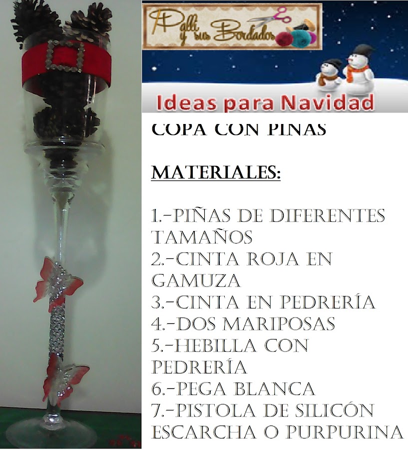 Otra idea para decorar, Una copa llena de piñas con una cinta roja y hebilla de pedrería
