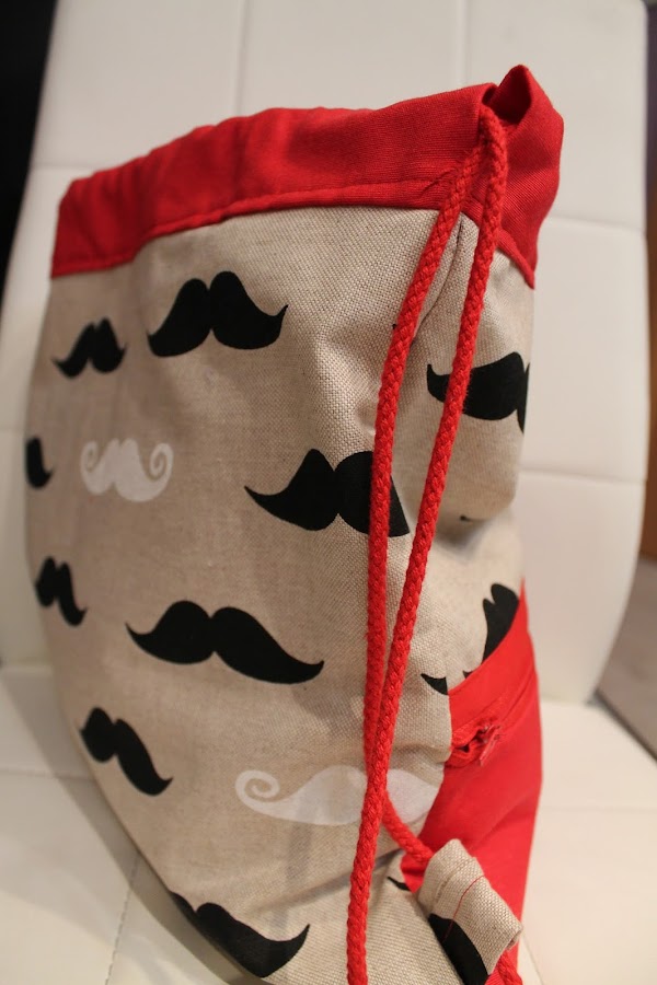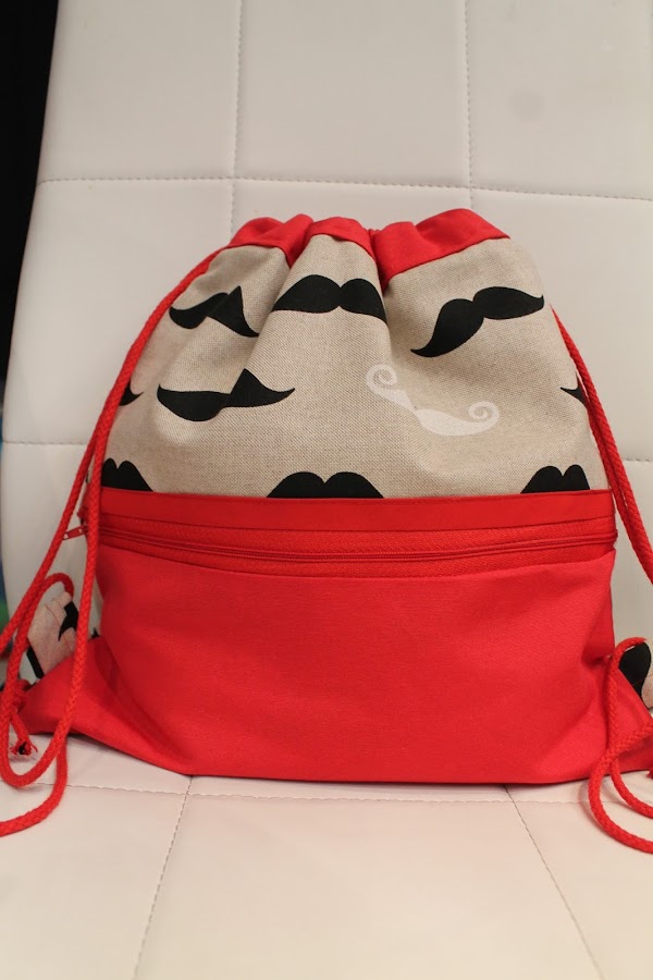 Están muy de moda, y no me extraña, si es que tengo la tela delante y se me ocurren mil cosas bonitas para hacer con ellos! Bueno, pasiones aparte, tan sólo recordaros que este modelo va forrado y que tiene dos bolsillos: uno interior en el forro, y el exterior que veis en rojo. Los cordones a juego, y ala, a estrenar!!!
