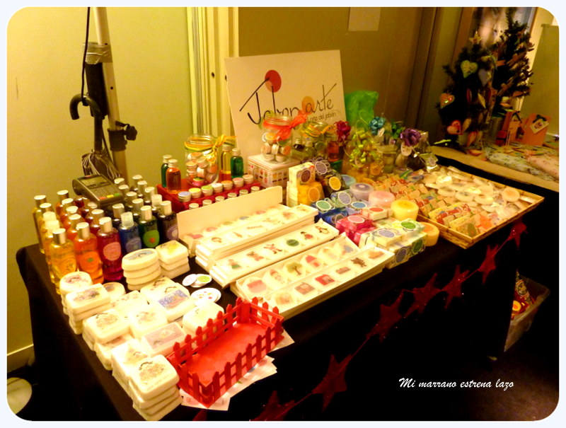 Mis vecinas eran geniales: Zuriñe de Jabonarte, fue con la primera que empecé a hablar, fue un amor todo el rato, y nos hicimos muchísima compañía durante todo el mercadillo, sus jabones son una pasada, y lo hace todo ella, es una artista!!!!! además también imparte talleres muy interesantes para hacer jabones en casa :)
