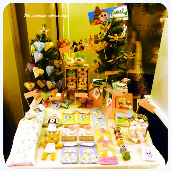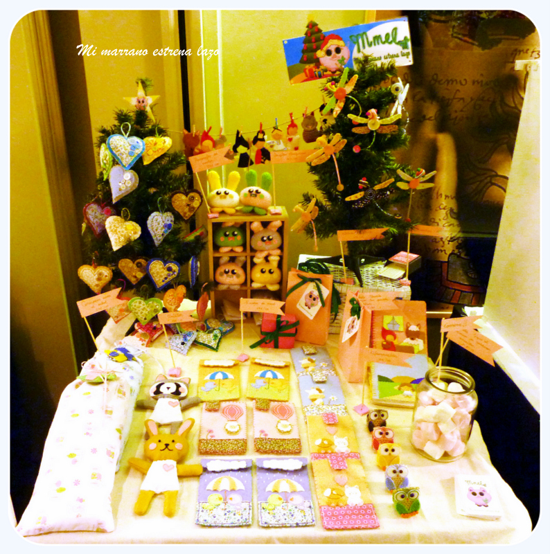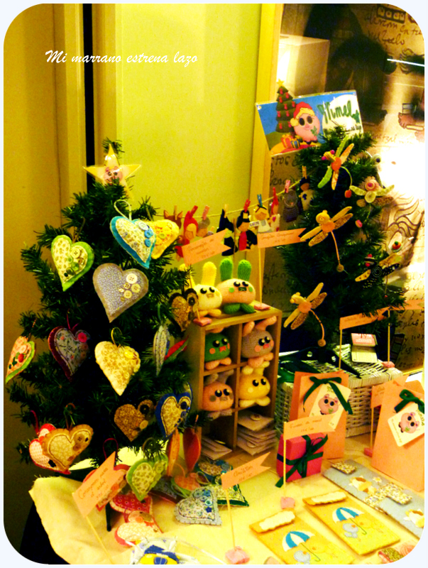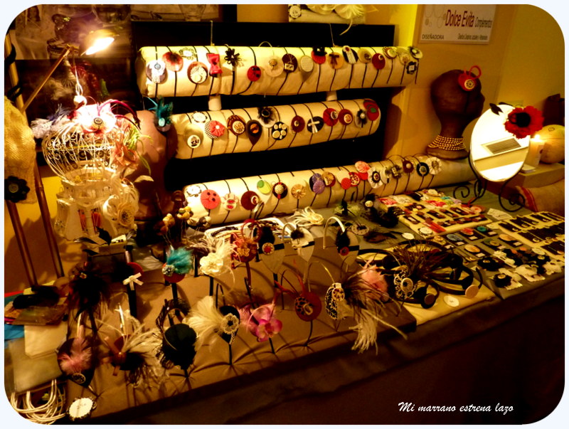 A pesar de lo que me gusta andar con la cámara de fotos de un lado para otro, esta vez, entre los nervios, ir de aqui para allá, estar atenta a todo lo que pasaba y mirar una y otra vez a ver que tal estaba mi puesto, no hice fotos a todo lo que me hubiera gustado, asi que os voy a dejar unas cuantas fotos más de otros puestos y otra del árbol de Navidad que había puesto en el Hotel Miró, por cierto, un Hotel precioso donde tuve el placer de conocer a la Ester, la Jefa de Resevas, hermana de Sonia, de el Acerico, y también a la directora, las dos, un encanto.