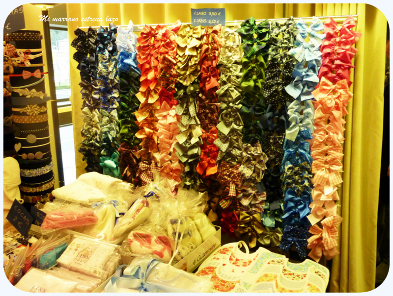 Justo en frente de mi puesto estaba la mercería "El acerico" y unas hermanas la mar de majas y simpáticas, Sonia fue la primera que conocí, otro amor!!!! si es que menuda suerte tuve. Traían unos lazos preciosos, aunque creo que lo que tuvo más éxito fueron sus zapatillas, para niños y para mayores, pero casi nadie se podía resistir a las de los mas peques de la casa. compartimos muchas horas muertas, jejeje.