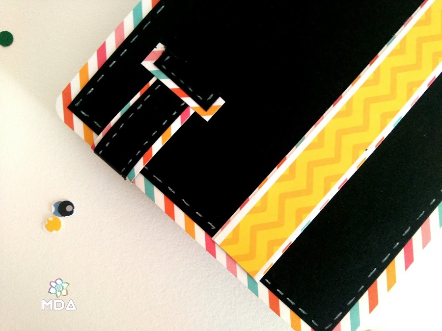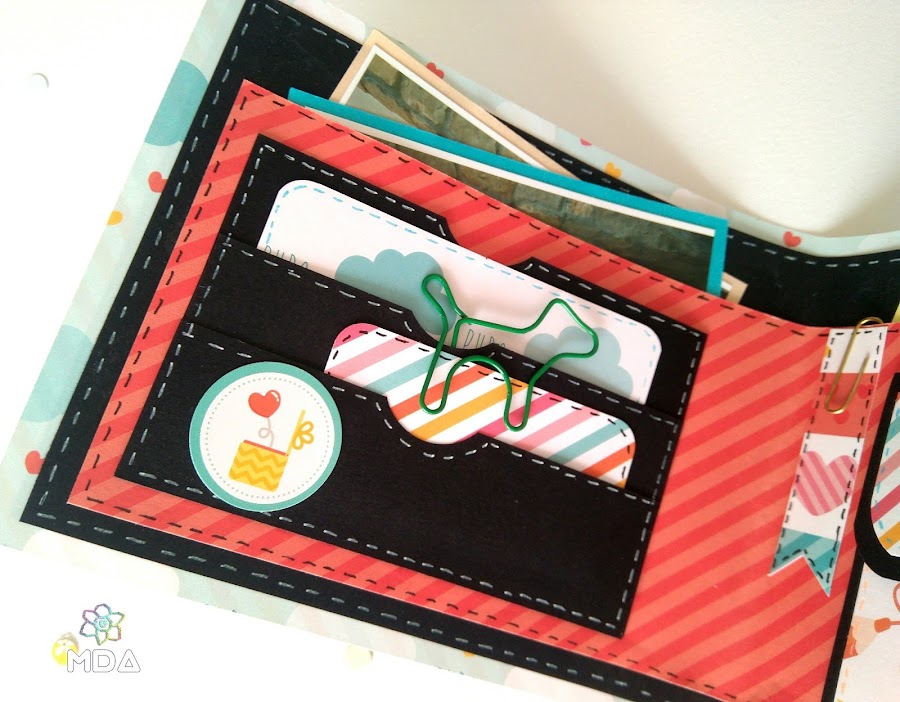 He usado papeles, pegatinas y abecedario de la colección "Puro amor" de Anita y su mundo, también cartulina negra (ultimamente me da por ahí) pero no vayas a pensar que la billetera ha quedado triste y seria, no, yo la veo muy divertida y con un toque masculino, cómo corresponde ;)