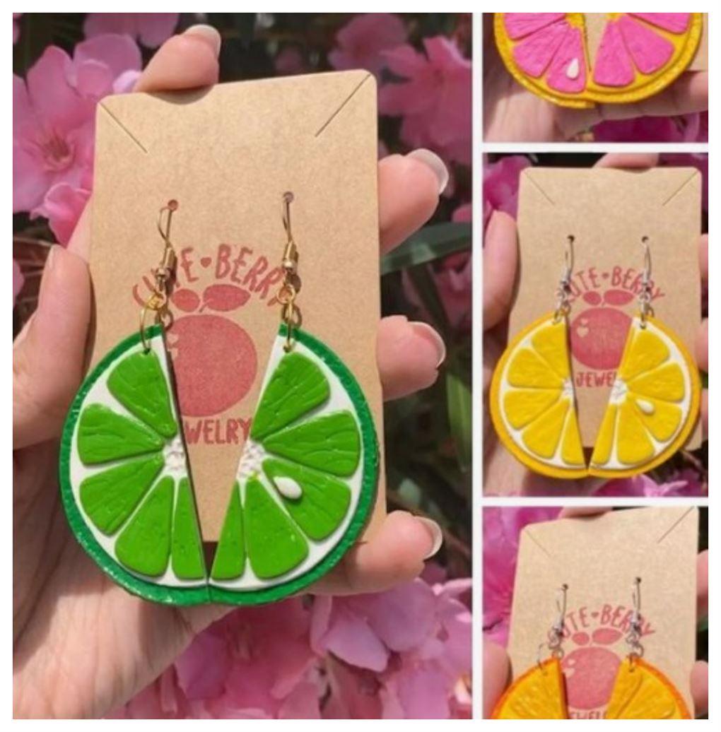 Limas de color rosa, amarillas, verdes completas, un par cortado a la mitad de su tamaño. Otra idea: no solo una rodaja de lima sino la lima cortada a la mitad y así la lista puede crecer mientras la inspiración va desarrollándose. ¿Te atreves a materializar tus propias ideas de bisutería con FIMO? No lo dudes, ¡Atrévete!
