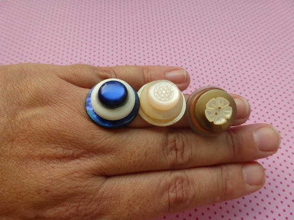 Y ya para acabar os mostrare unos anillos hechos con botones que he ido reciclando de prendas vieja o de esos que van con la ropa al comprarla, por si pierdes alguno. Veréis como hacerlos aquí.