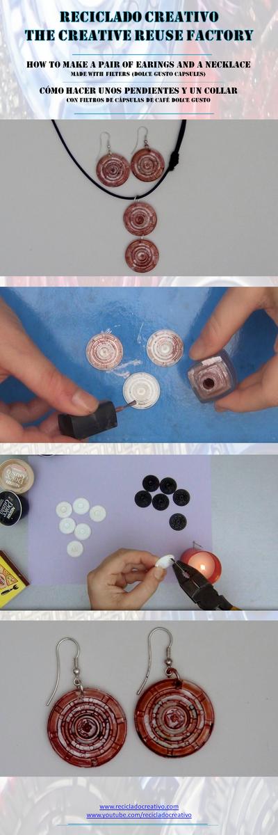 Siguiendo con las capsulas de café os dejo otro para de pendientes y un collar, estos creados por Reciclado Creativo, ellos también nos muestran paso a paso como hacerlos.