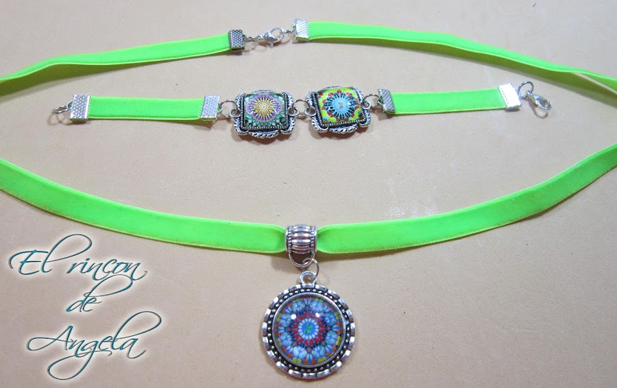 A continuación, te cuento como hacer tu misma, super fácil, este bonito conjunto de collar y pulsera de terciopelo elástico.