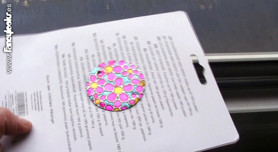 Mientras ese medallón cura, preparo otro que hice de la misma manera que el anterior, pero usando, en vez de unas tapas de yogur, una bandeja de aluminio de las que se usan para guardar la comida. Este, además, lo coloreé con rotuladores Sharpie permanentes en vez de con tintas de alcohol de bote.
