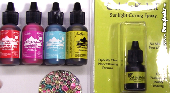 Para pintar los círculos, ya marcados con el relieve, voy a usar tintas de alcohol que pintan casi en cualquier superficie y agarran muy bien al aluminio.