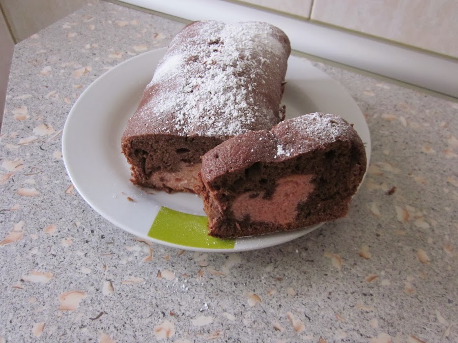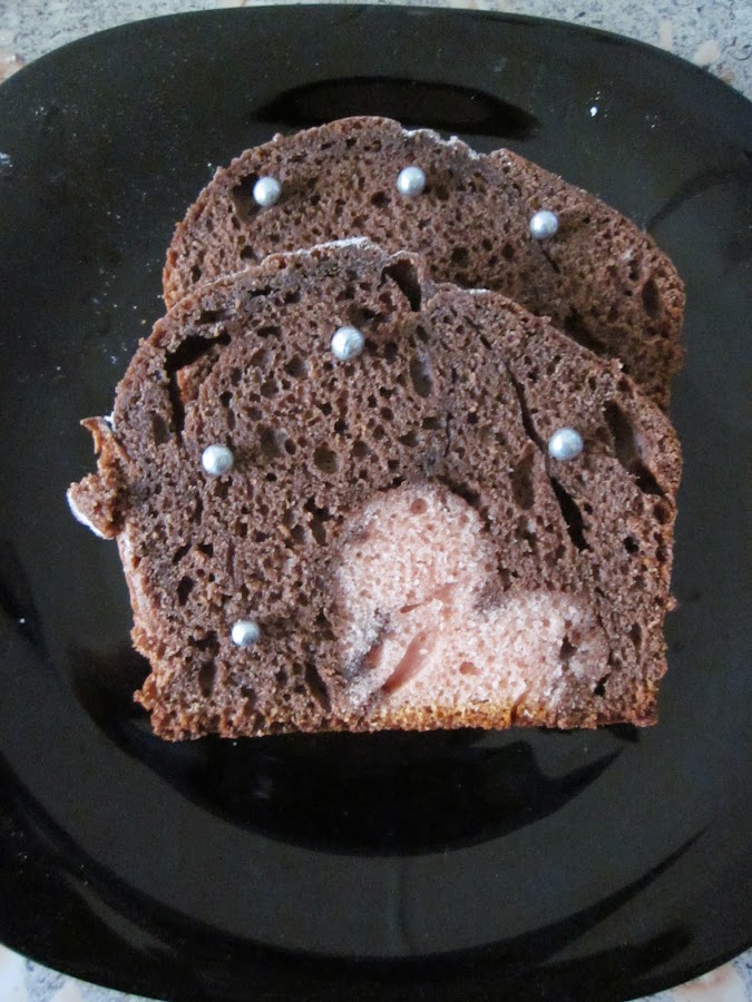 Es la primera vez que hago este tipo de bizcocho. A pesar de alguna pega (me quedé sin colorante rojo y el corazón me quedó volcado) ha quedado bastante original =)