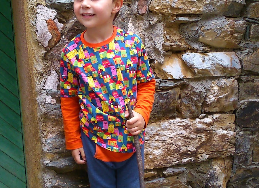 La única modificación que le he hecho al patrón es la falsa manga corta con una naranja debajo, ese corte me gusta mucho, los que me seguís ya habréis visto más de uno por mi blog...