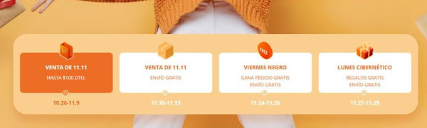 Tenemos las ventas del 11-11 con descuentos muy importantes, de hasta 100$ y con envío gratis