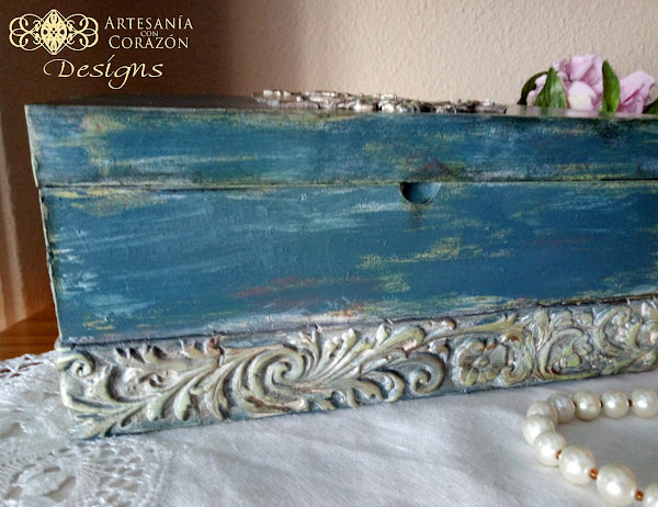 Caja de madera para bolsitas de te. Decoración vintage, detalles de pasta.