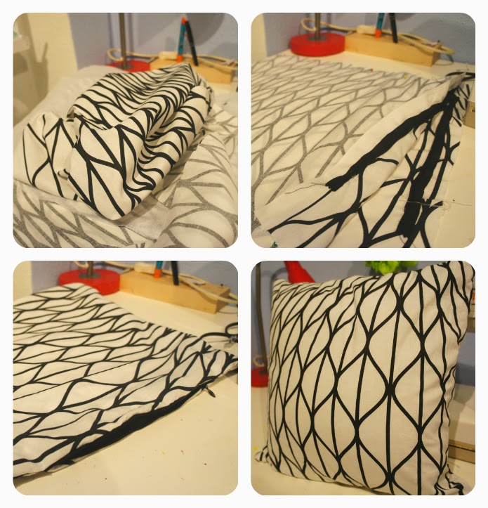 A good idea to change your home-decor for not so much money is to sew your own cushions. I wanted the place to look lighter so I picked white themed fabrics. Finally, the slight but super-cute colour touch came from the blue zippers.