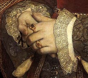 Es una forma de bordado generalmente con hilo negro. Fue utilizado mucho en la corte inglesa en el siglo XVI. La reina Catalina de Aragón, (nacida en España y una de las esposas del rey Enrique VIII), lo popularizó en Inglaterra, por lo historicamente, se le conoció como bordado español.
