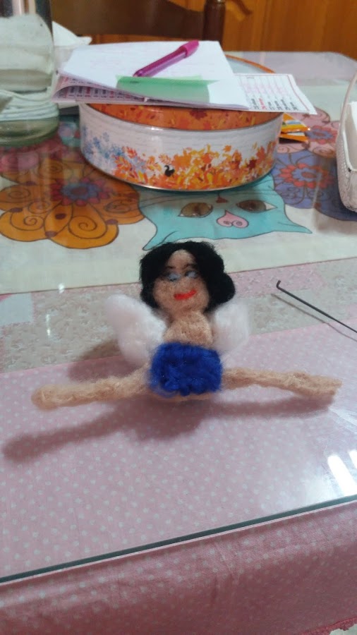 Lo que parecían piernas eran los brazos, el torso casi terminado , y la falda ,será la que dará consistencia y podre dejar de pie a mi princesita.
