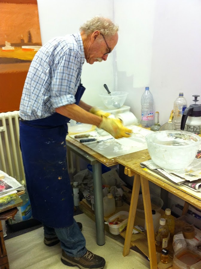 Espero que las fotografías que muestran el brillo que es visible en la mezcla y la forma en que las partículas se hicieron más pequeños después de la mezcla. Puedo ver al observar este método que por el manejo de los materiales de esta manera uno está más cerca de los materiales naturales que permitieron a nuestra pintura en la tradición de aceite. Más cerca aún a la vista, a la luz y con la química. En mi próximo blog voy a hablar de la molienda ocre rojo, que lo hice yo mismo y era muy divertido. Cuando usted lo hace usted puede sentir las materias primas, es realmente algo digno de contemplar.