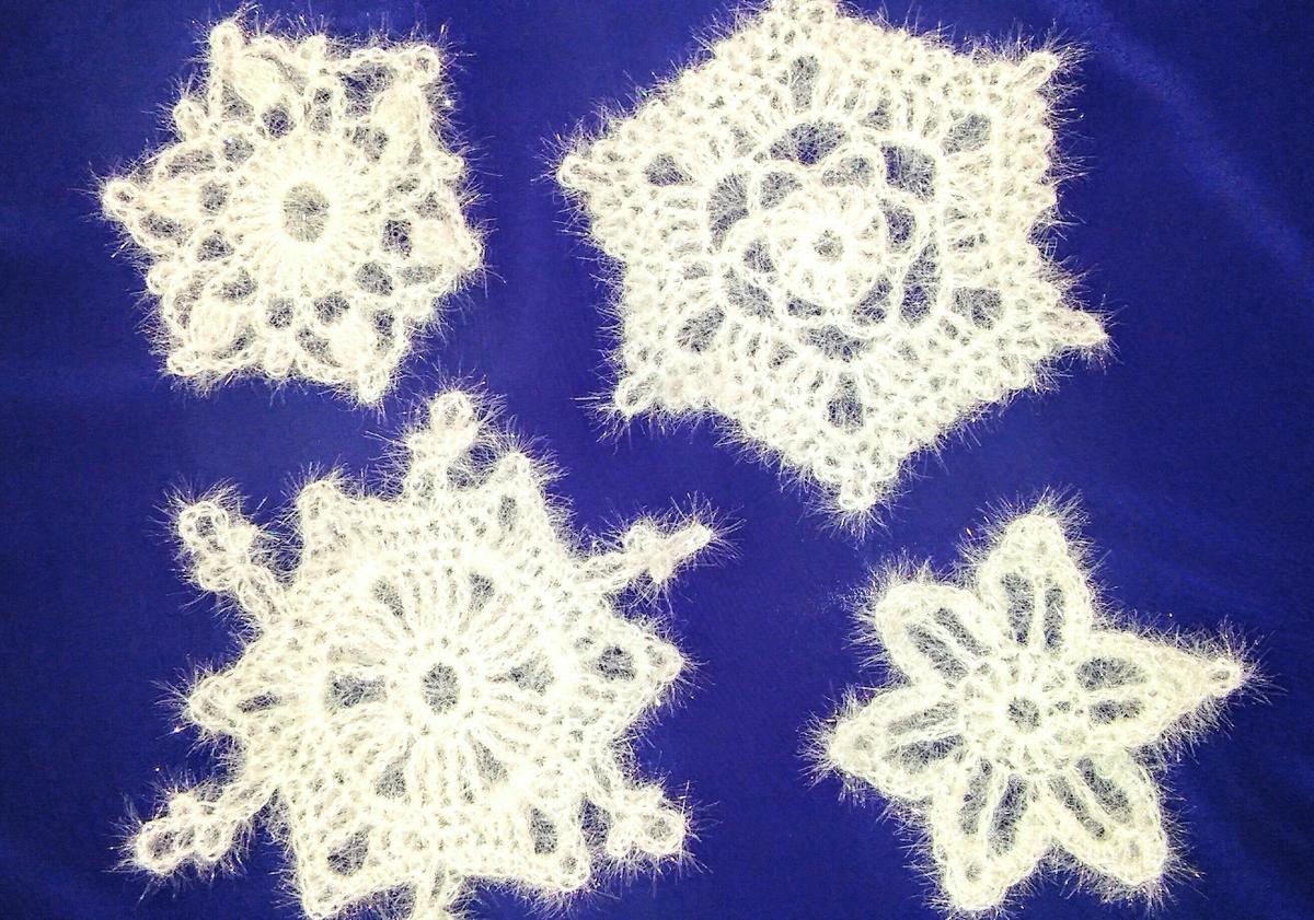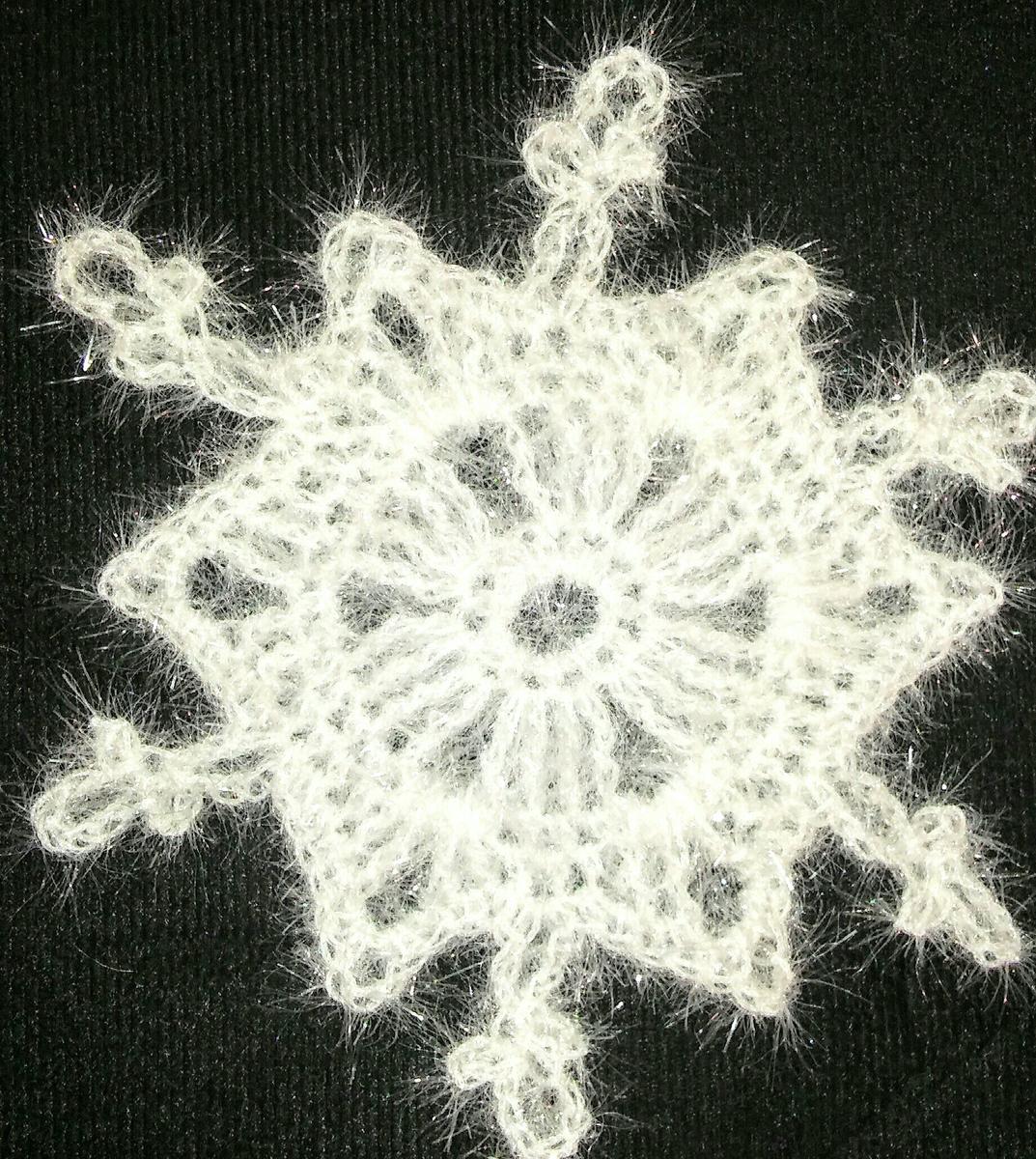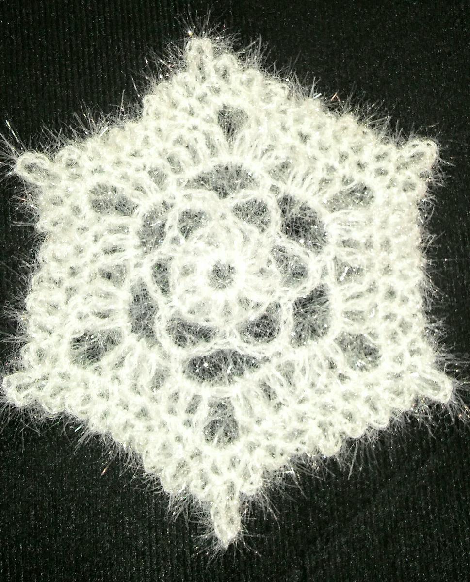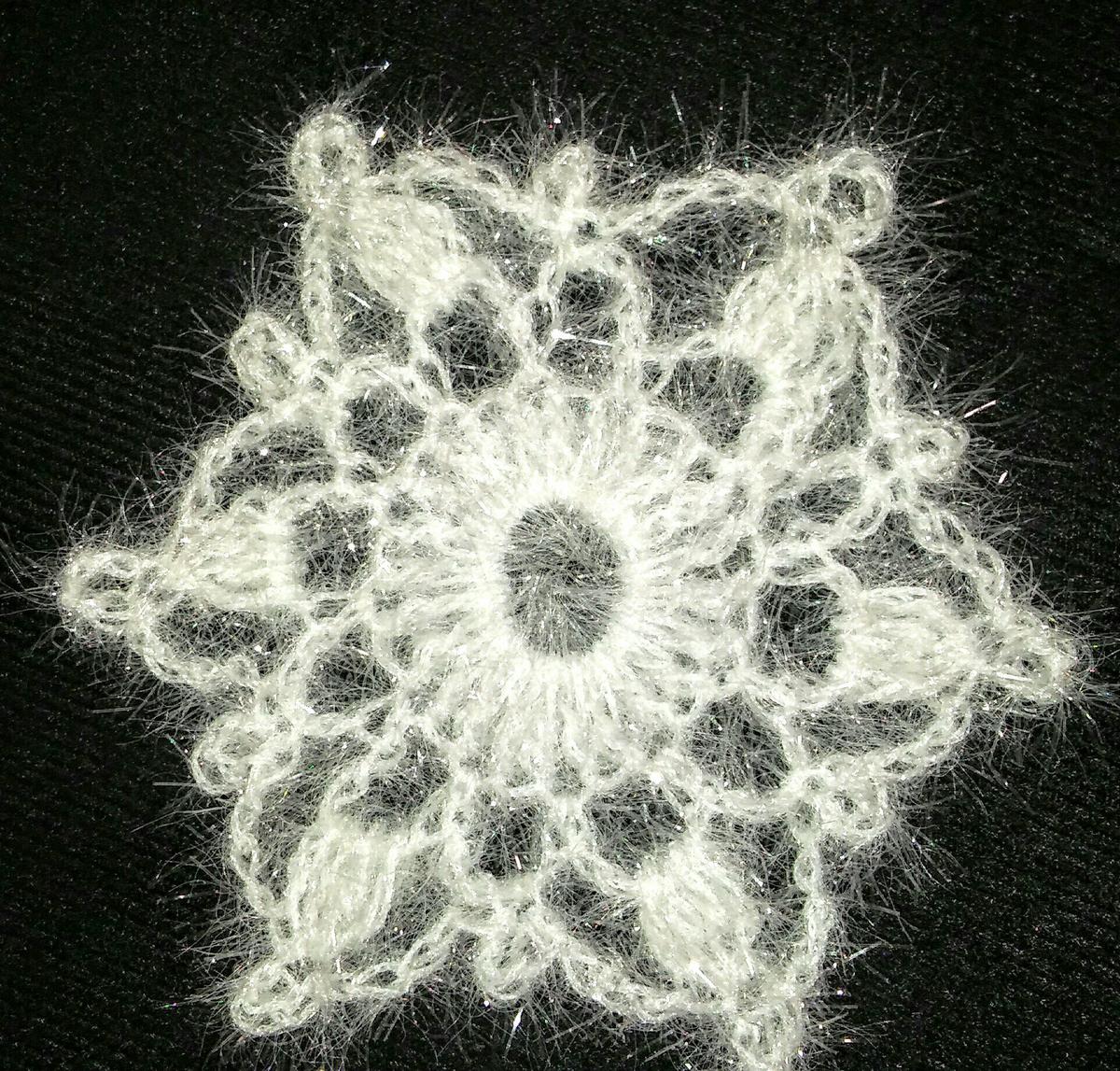 Esta hilatura está compuesta 100% poliéster con un poco de brillo y además tiene pelito , así que parecen copos de nieve.